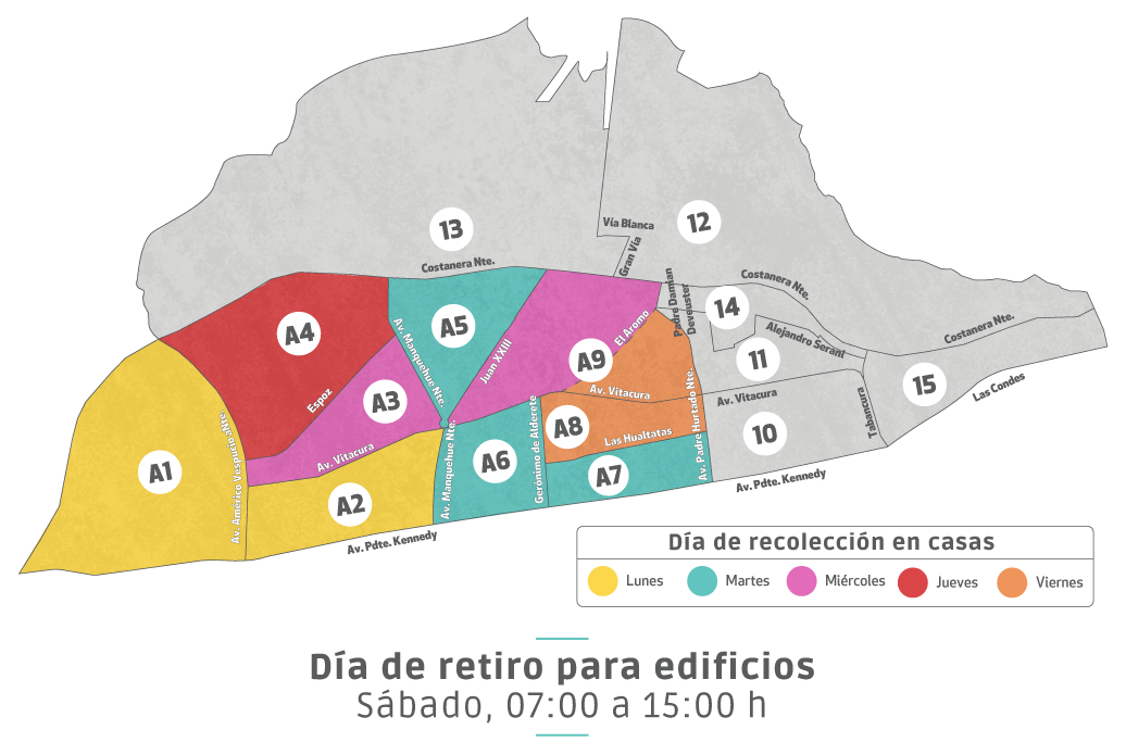 • Frecuencia de retiro: El camión recolector pasará una vez a la semana. El día específico dependerá del sector en el que vivas.
